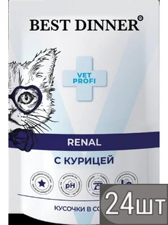 24 шт Паучи для кошек Renal кусочки в соусе с Курицей, 85г