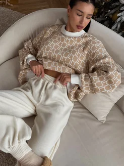 Джемпер теплый оверсайз с принтом