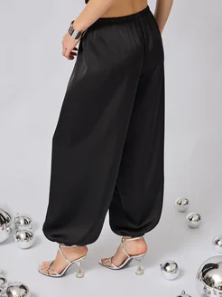 Брюки алладины атласные черные нарядные