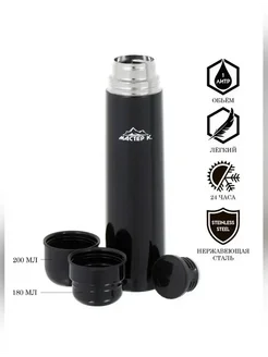 Термос с кружками, 1 л, черный, 24 ч тепла