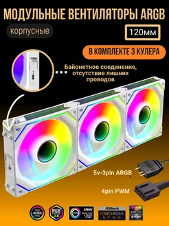 Вентиляторы для корпуса ПК модульные 120мм АRGB 3шт белые