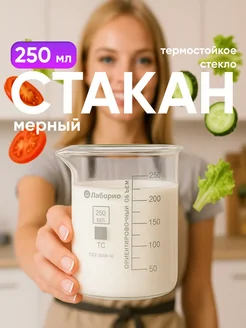 Мерный стакан 250 мл стекло низкий Н-1-250
