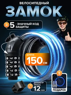 Замок для велосипеда тросовый с ключом 150 cm