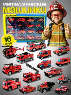 Набор машинок металлические пожарные, 16 шт, не хот вилс