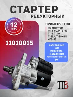 Стартер редукторный на трактор 11010015, 12В 4,2(2,8) кВт