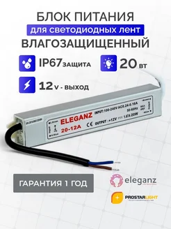 Блок питания для светильника 12В, 20 Вт, IP67