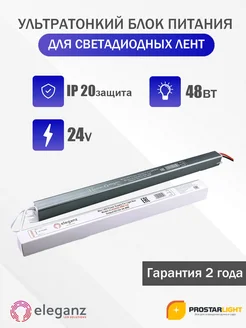 Блок питания КАРАНДАШ негерм. узкий 24V, 48W, IP20