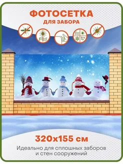 Фотосетка Новогодняя фотофасад для забора беседки 320х155 см