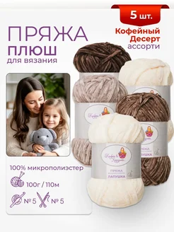 Пряжа плюшевая «Лапушка» набор 5 мотков 100 % микрополиэстер