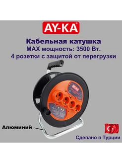 Кабельная катушка 4 розетки с защитой от перегрузки (AY-KA)