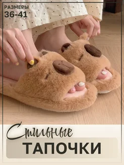 Тапочки капибара домашние открытые пушистые с мехом