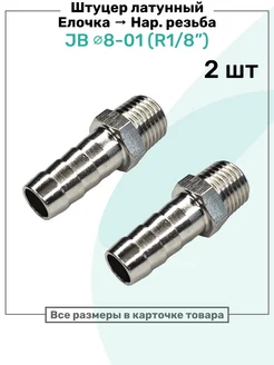 Штуцер елочка с наружной резьбой JB 8-01, 8мм - R1 8", 2шт
