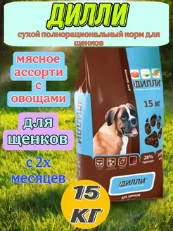 Сухой корм дили 15 кг для щенков мясное ассорти