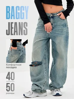 Джинсы широкие бананы багги рваные (маломерят на 1 размер)