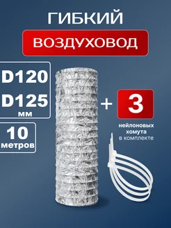 Воздуховод для вытяжки 100 мм 10 м гибкий с хомутами