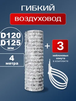 Воздуховод для вытяжки 120 (125) гибкий 4 м с хомутами