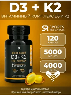 Витамин Д3+К2 5000 ME 120 капсул для иммунитета