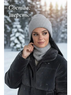 Шапка осенняя, зимняя с шарфом