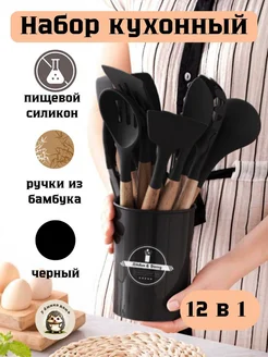 Набор кухонных принадлежностей силиконовые в стакане черный
