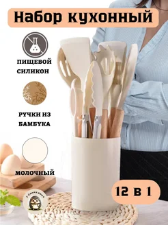 Набор кухонных принадлежностей силиконовые в стакане бежевый