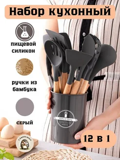 Набор кухонных принадлежностей силиконовые в стакане серый