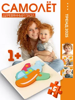 Пазл деревянный для малышей 1 год монтессори "Самолет"