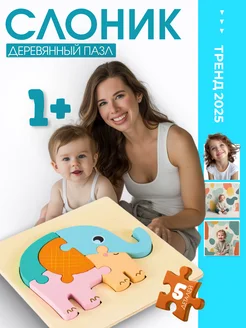 Пазл деревянный для малышей 1 год монтессори "Слоник"