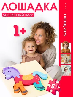 Пазл деревянный для малышей 1 год монтессори "Лошадка"