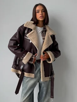 Дубленка авиатор оверсайз удлиненная