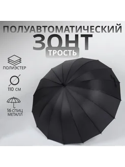 Полуавтоматический зонт трость чёрный 96 см 48 см