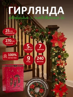 Новогодняя хвойная гирлянда с цветами ягодами и светодиодами
