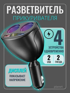 Разветвитель прикуривателя на 2 разъема с дисплеем