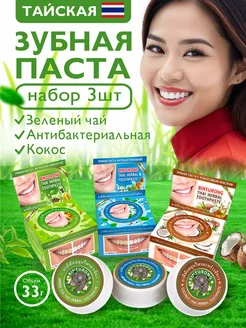 Тайская зубная паста (з.чай+антибакт+кокос), 3 шт,набор №6