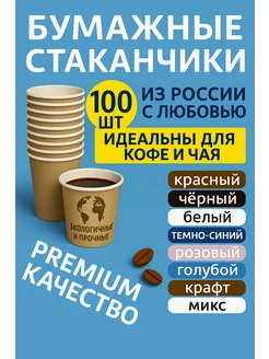 Стаканы одноразовые бумажные крафт без крышки 250 мл 100 шт