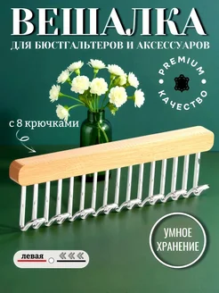 Вешалка с крючками для одежды аксессуаров деревянная