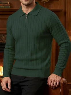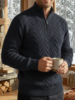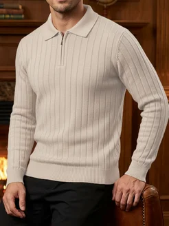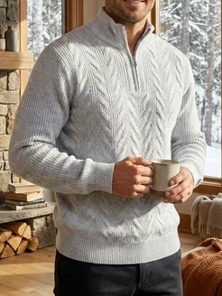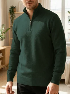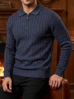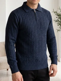 Свитер на молнии вязаный теплый шерстяной джемпер поло