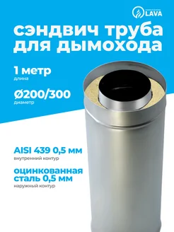 Сэндвич труба 1 м, 200 300, AISI 439 оцинк 0,5 мм Н О