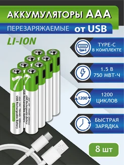 Аккумуляторные батарейки ААА с USB перезаряжаемые 8 шт
