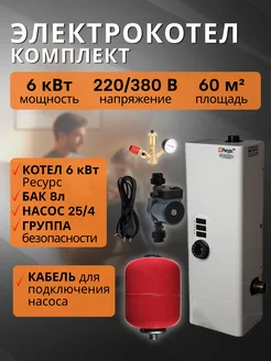 Электрокотел 6 кВт, комплект, насос с кабелем
