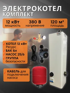 Электрокотел 12 кВт, комплект, насос с кабелем