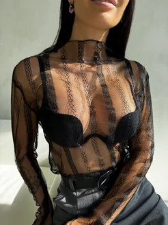 Прозрачная водолазка сетка кофта женская