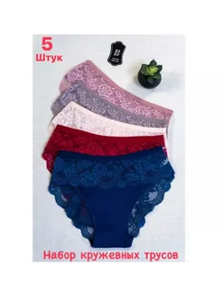 Трусы женские набор хлопок 5шт нижнее белье кружева слипы