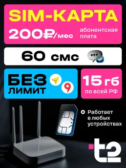 SIM-карта t2 15 ГБ + 60 смс + безлимиты