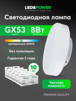 Лампочка светодиодная GX53 8W нейтральный свет 4000K 10 шт