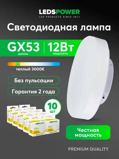 Лампочка светодиодная GX53 12W теплый свет 3000К 10 шт