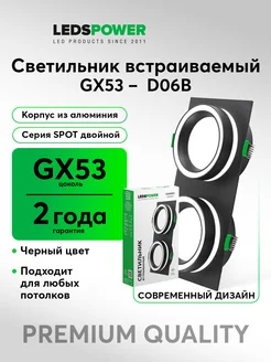 Светильник потолочный встраиваемый GU10 SPOT черный двойной