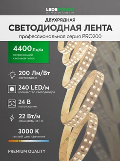 Светодиодная лента 5м 24V теплая 3000К двухрядная ПРО200