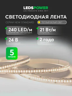 Светодиодная лента 5м 24V теплая NEW STANDARD