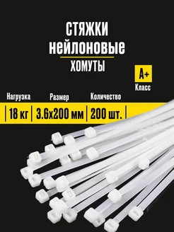 Стяжки нейлоновые пластиковые белые 200х3 6мм 200 штук