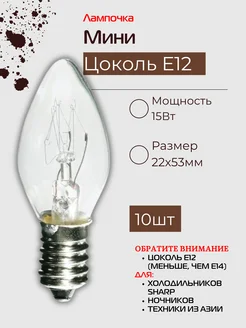 Лампочка Е12 15Вт, холод Sharp, светильники, 10 шт